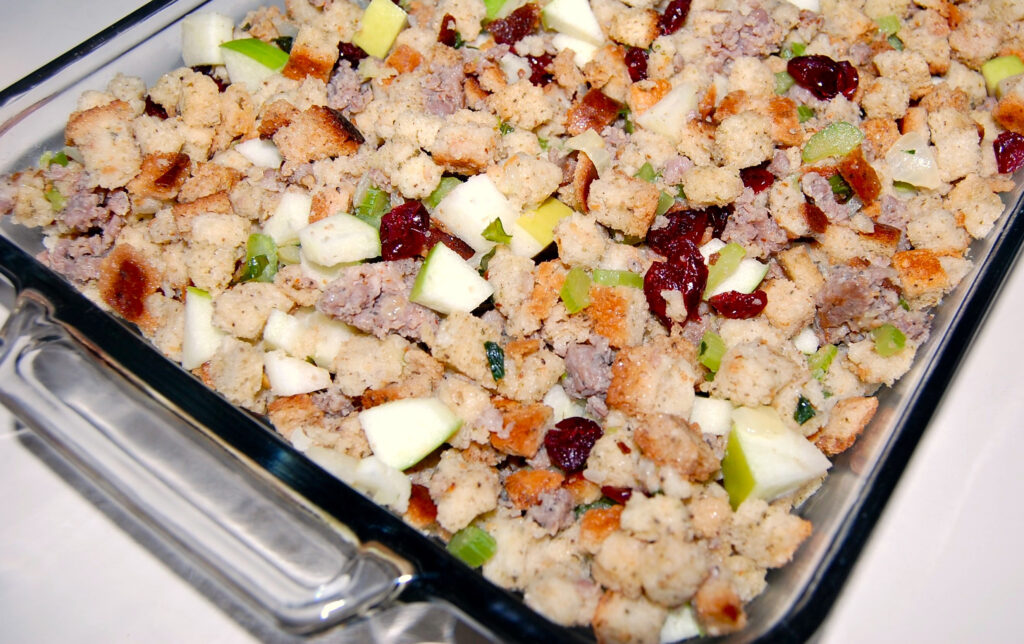 Serve this colorful stuffing with holiday turkey, roast chicken or pork.