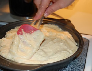 - Microwave chocolate and butter on high for 1 minute, stir until chocolate is melted. Add sugar and 2 tablespoons of milk, mix well. Spread over top of cake only. Refrigerate for 1 hour and serve.