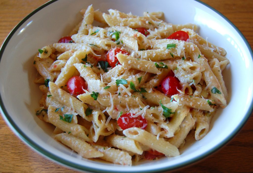 A delightful Italian pasta dish traditionally served on Palm Sunday, featuring penne pasta, hearts of palm, and cherry tomatoes in a delicious creamy parmesan cheese sauce, Enjoy!