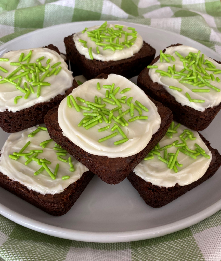 Need a chocolate fix? Try our rich and gooey chocolate brownies topped with Baileys Irish cream frosting!