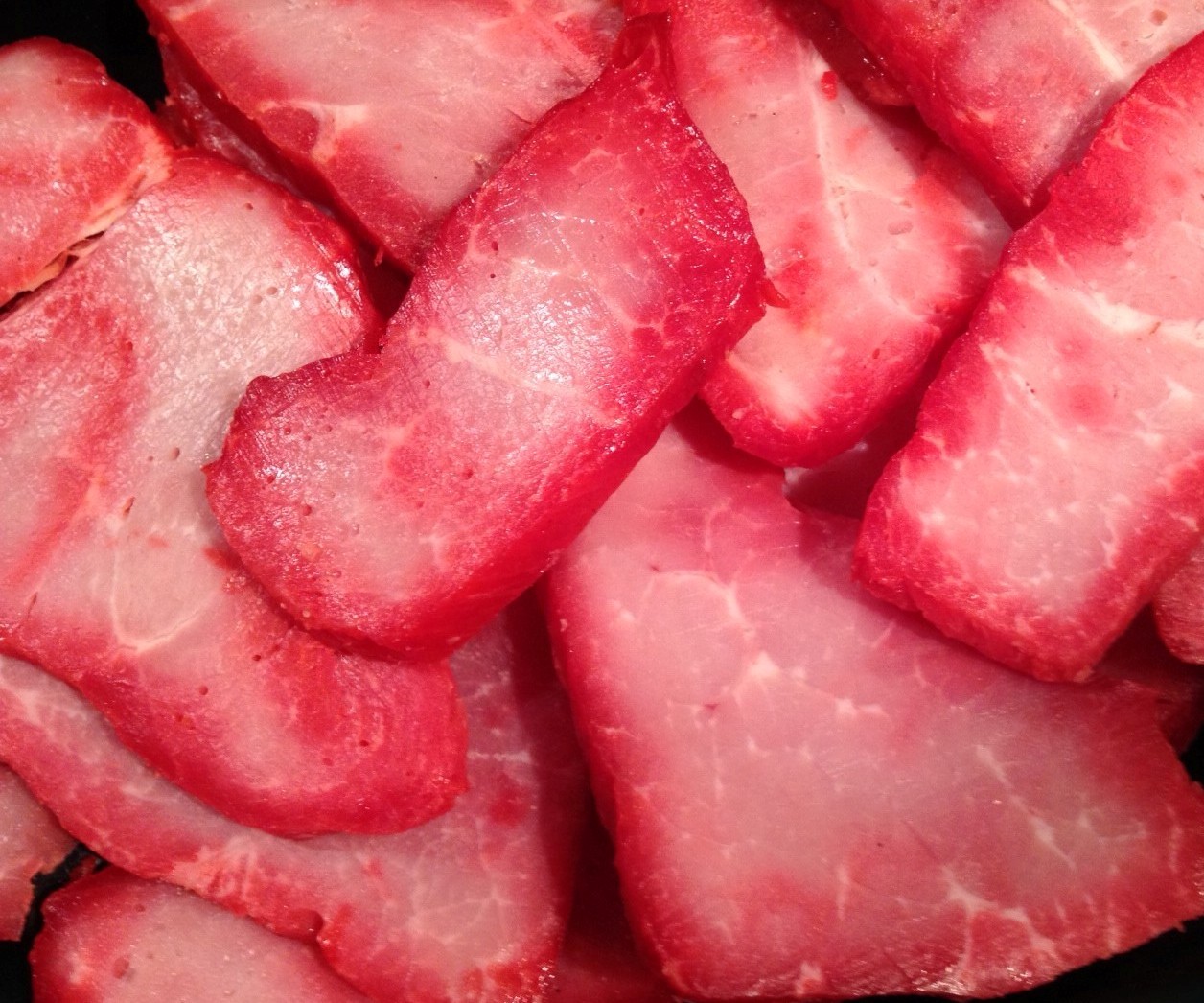 Sweet barbequed pork thinly sliced and dipped in spicy mustard and sesame seeds OR diced and cooked with rice, noodle dishes, or stir-fries.