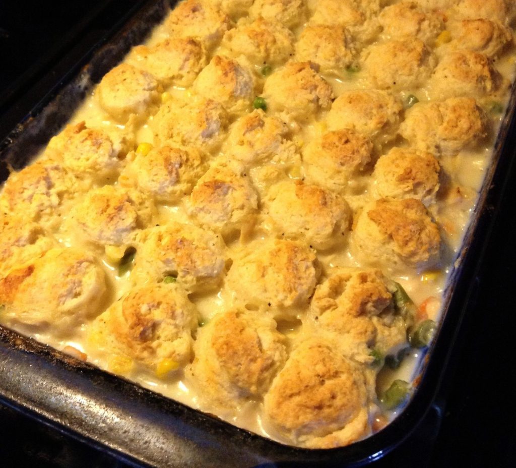 Creamy chicken and vegetables topped with homemade buttermilk biscuits. The ultimate comfort food!