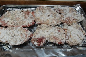 - Combine 1 cup flour and cayenne pepper in a wide, shallow dredging bowl and pour buttermilk into another dredging bowl. Coat steaks in flour, then buttermilk, and again in the flour. Transfer to a baking sheet lined with a cooling rack and let stand for 20 minutes.