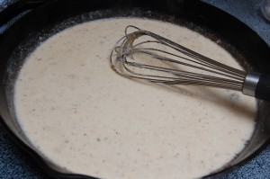 - Carefully pour all but 2 tablespoons of fat from the skillet and return the skillet to heat. Whisk in the remaining 3 tablespoons flour, cooking until bubbly and golden, 1 minute. Whisk in milk and season with remaining 1/2 teaspoon salt and 1/4 teaspoon pepper. Boil, whisking constantly, until gravy thickens slightly, 1 minute. Season with more salt and pepper, if desired. Transfer to a gravy boat or small pitcher and serve immediately poured over steaks.