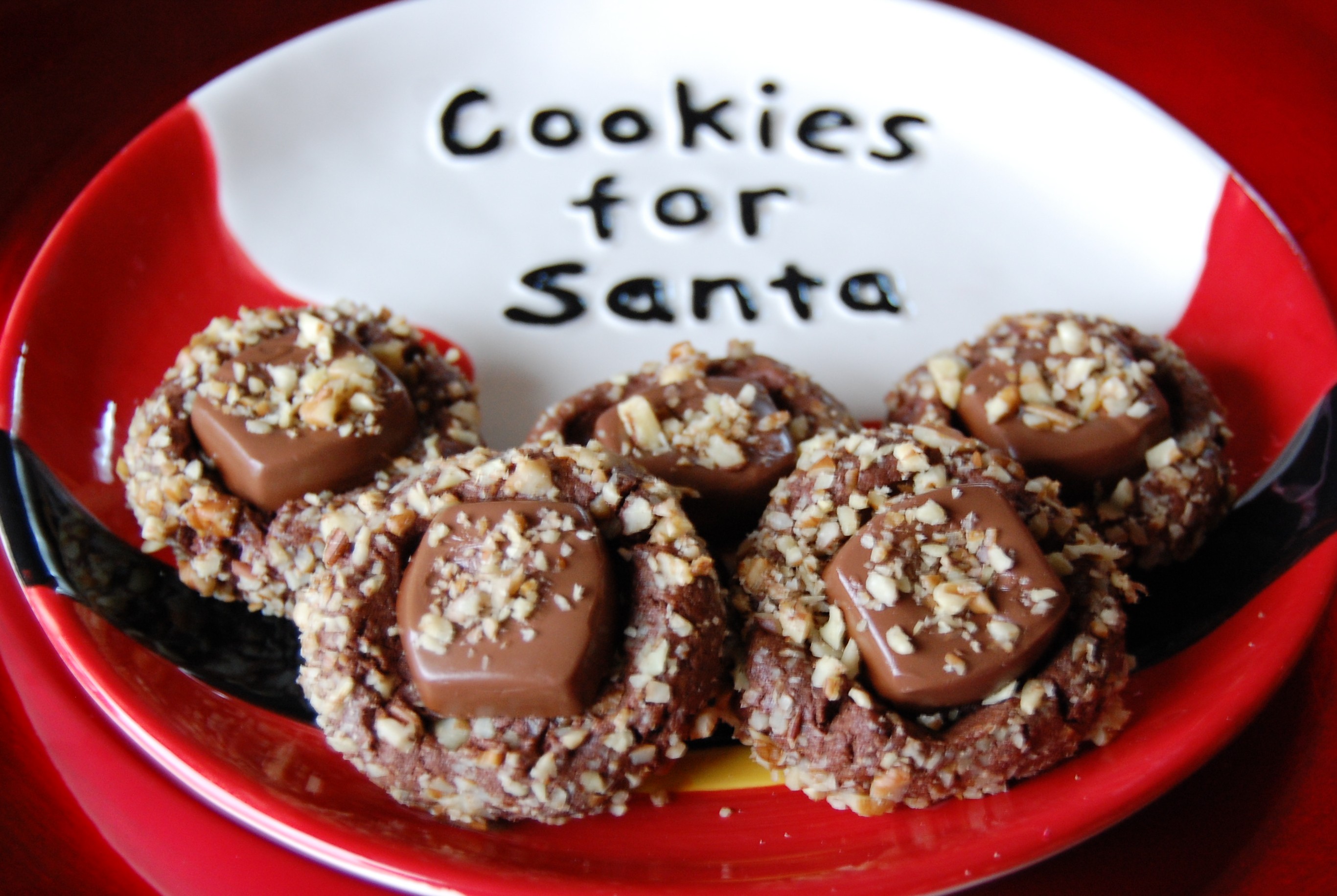 A rich chocolate cookie, rolled in chopped pecans, filled with a melted Dove chocolate-covered caramel.