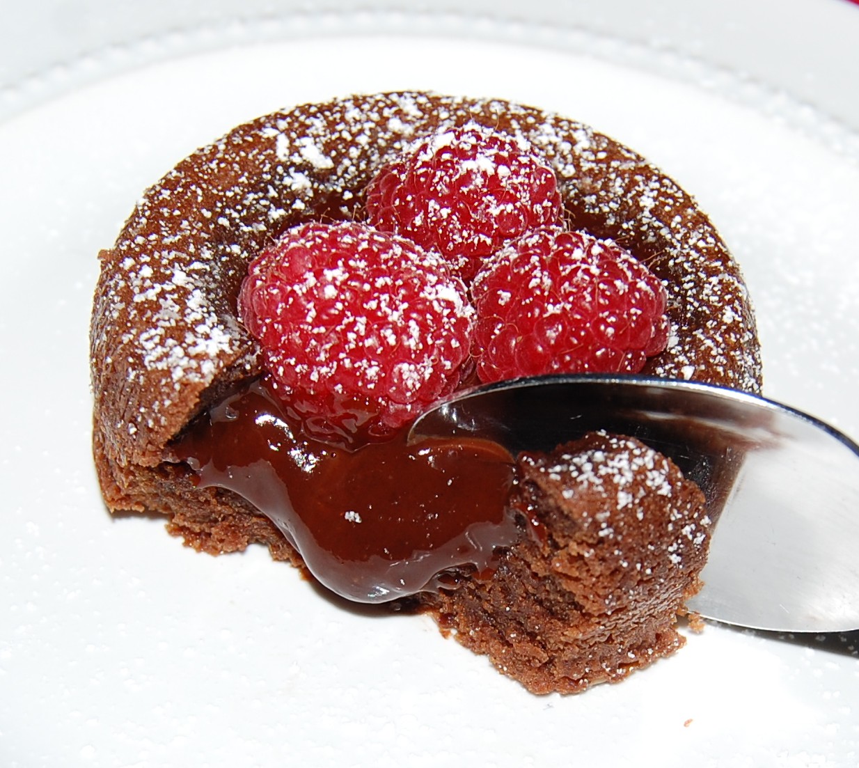 Also known as molten chocolate cake, is a decadent dessert known for its rich, chocolaty center that oozes out when you cut into it creating a visually stunning experience. Top with a dusting of confectioners’ sugar, a scoop of vanilla ice cream, or a dollop of whipped cream and fresh berries to compliment the rich chocolate flavors and textures. Enjoy!