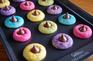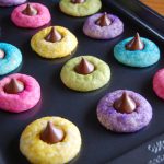 Sweet sugar cookies rolled in colorful sprinkles, topped with a chocolate Hershey’s kiss. The perfect cookies for your Easter celebration!