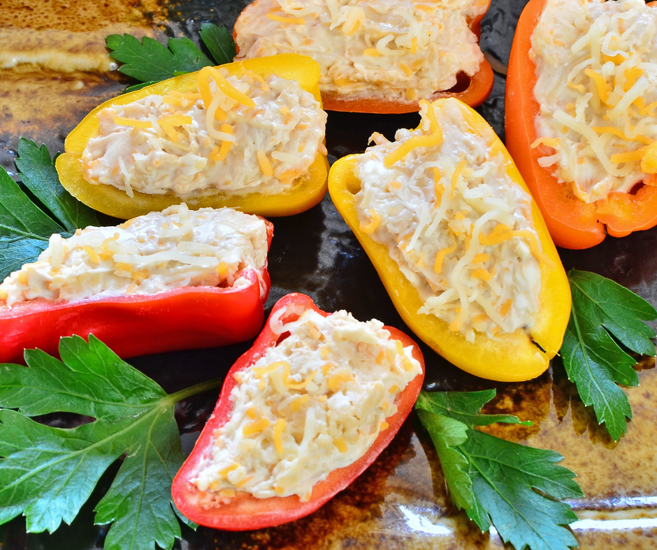 - Slice peppers in half and remove seeds and membranes with a spoon. Stuff peppers with shredded Pepper Jack cheese.