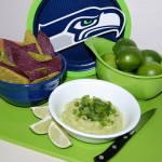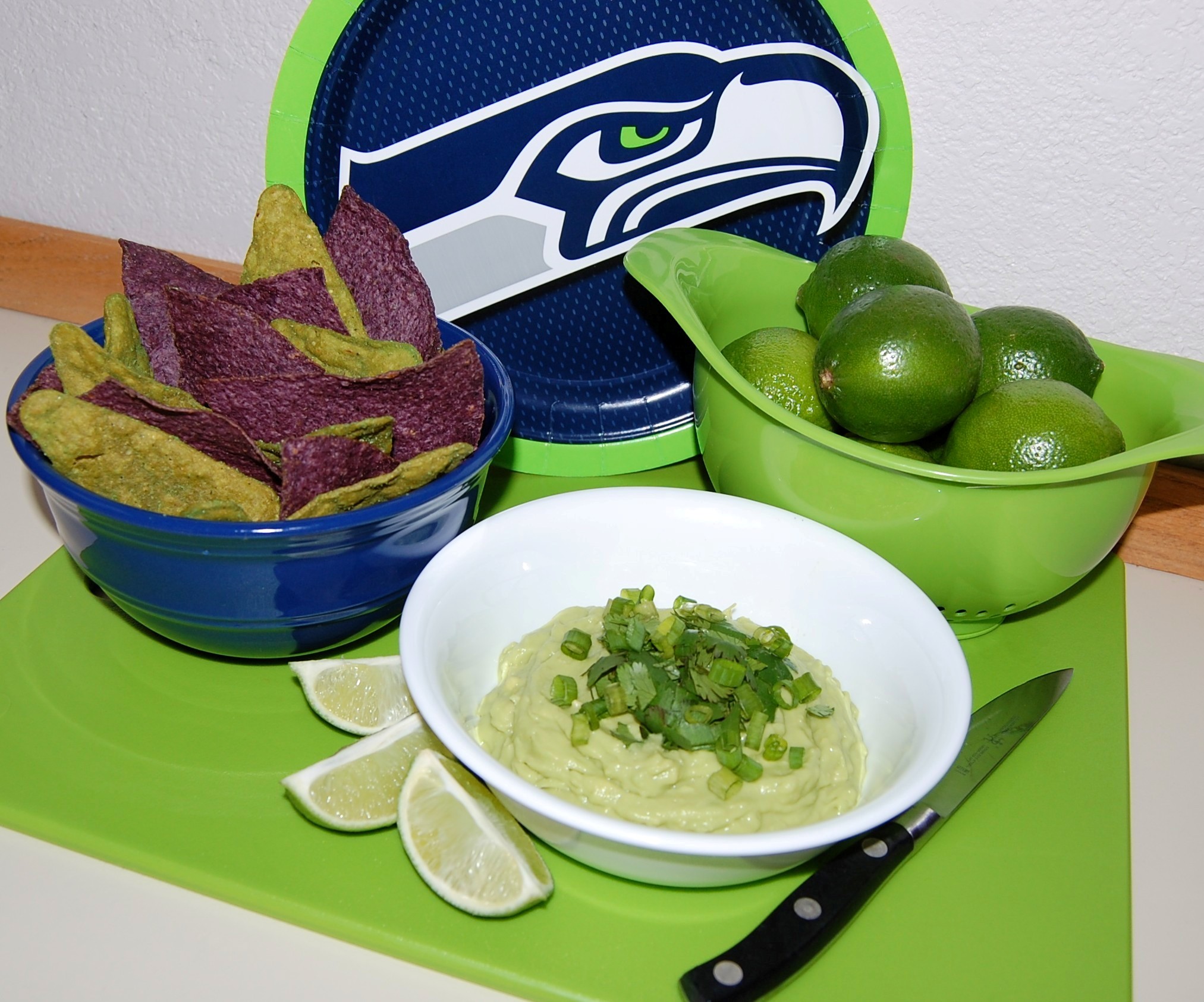 Guacamolé served Seahawks Style with Blue and Green tortilla chips!