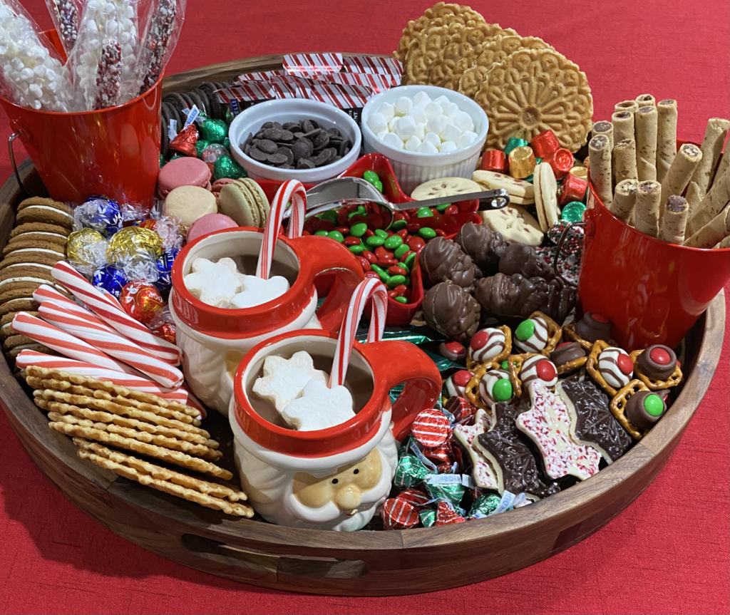 Our charcuterie board is adorned with everything you need to make the perfect cup of hot cocoa, Enjoy!