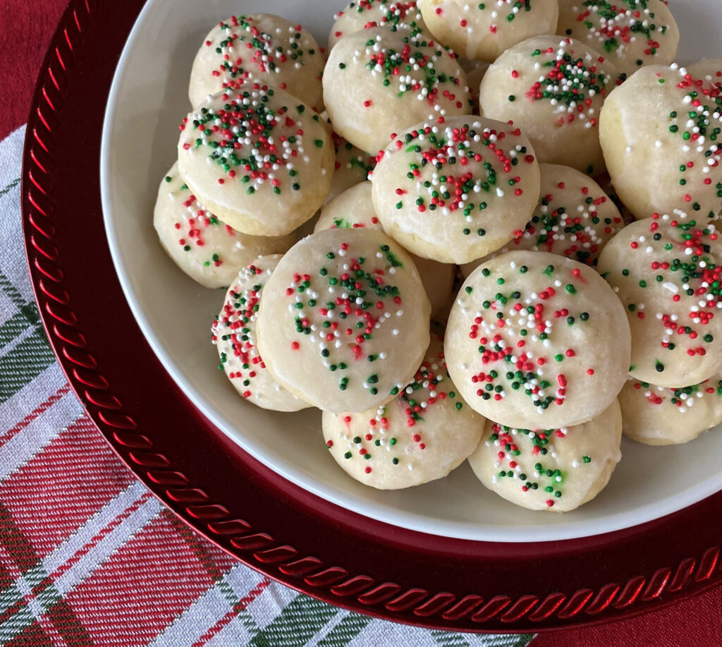 Delicate ricotta cookies topped with an almond glaze and festive sprinkles, Enjoy!