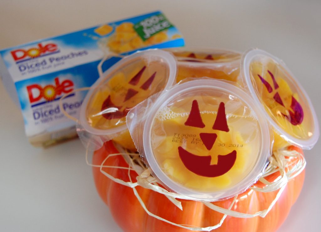 Individual mandarin oranges or diced peaches, and a permanent marker, turn ordinary fruit snacks into Extraordinary! Perfect for school lunches or a class party!