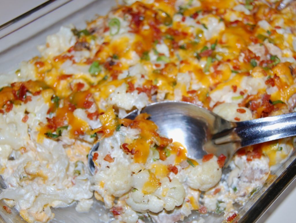 - Pour into a 9 x13-inch baking dish and sprinkle with remaining 1 cup of cheese and bacon crumbles.