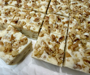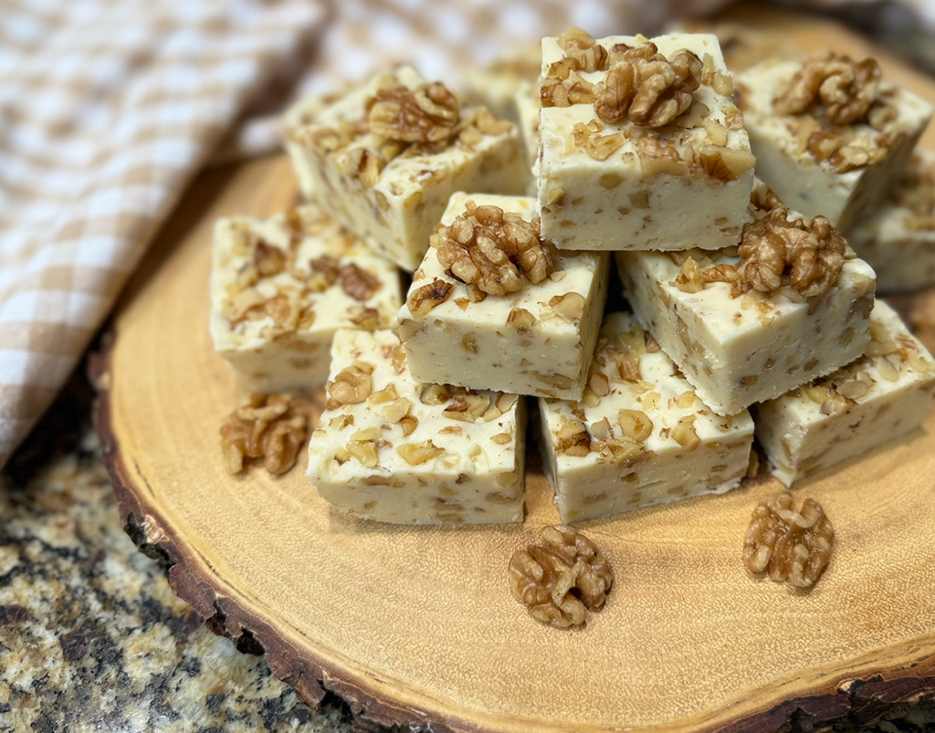 A creamy, melt-in-your-mouth confection made with rich maple extract studded with crunchy toasted walnuts. Sweet, buttery, and irresistibly smooth, it brings classic candy-shop charm with a warm maple twist, Enjoy!