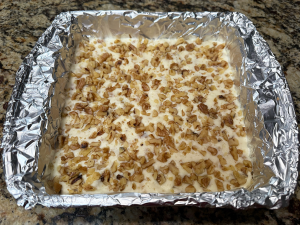 - Line an 8×8-inch baking dish with aluminum foil, being sure to allow a little extra to hang over the sides.