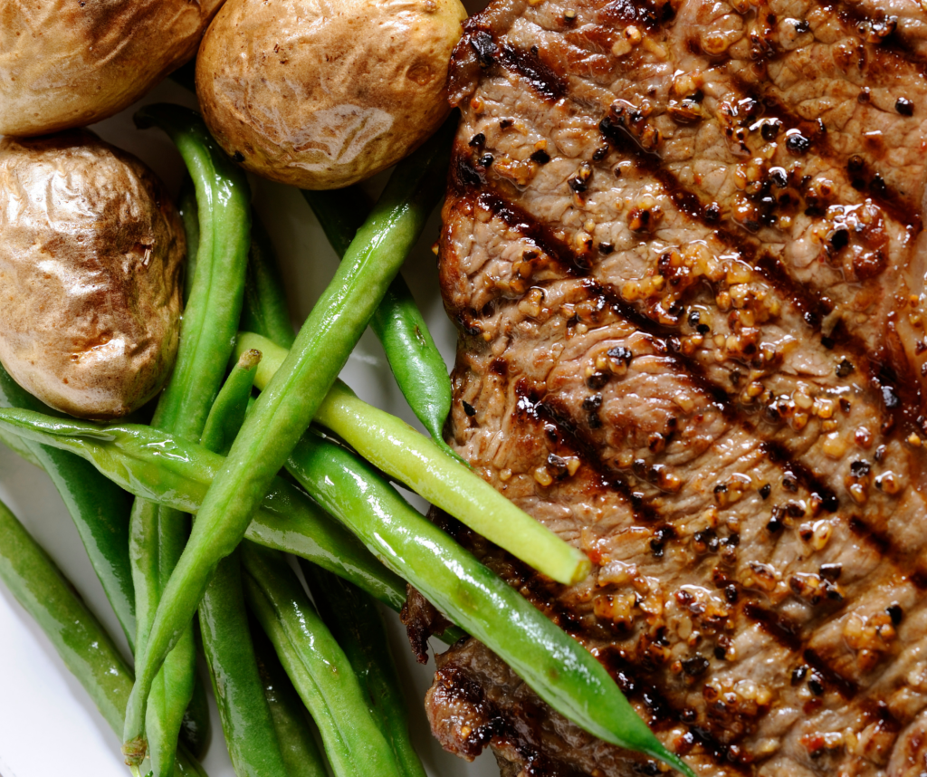 A perfectly seasoned steak grilled indoors or outdoors with your choice of sides!