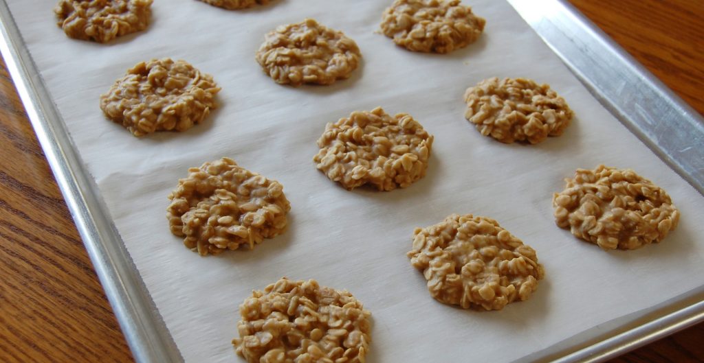 - Using a wood spoon, stir in oats until well coated. Drop cookie mixture by 1 1/2 to 2 tablespoonful size onto prepared cookie sheet.