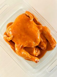 - 1 (4 to 4-1/2 lb.) whole chicken butterflied