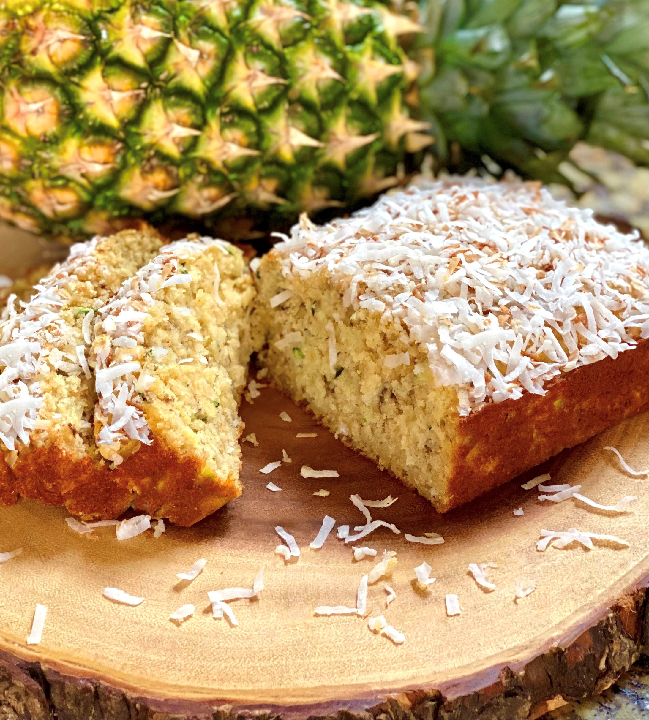 Inspired by my favorite cocktail this tropical quick bread is loaded with zucchini, sweet pineapple, toasted coconut, and pecans, Enjoy!