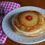 Try our homemade recipe for pancakes OR use your favorite pancake mix, topped with brown sugar glazed pineapple rings and cherries.