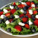 Celebrate Summer and Independence Day with this beautiful red, white, and blue salad, topped with poppy seed dressing!