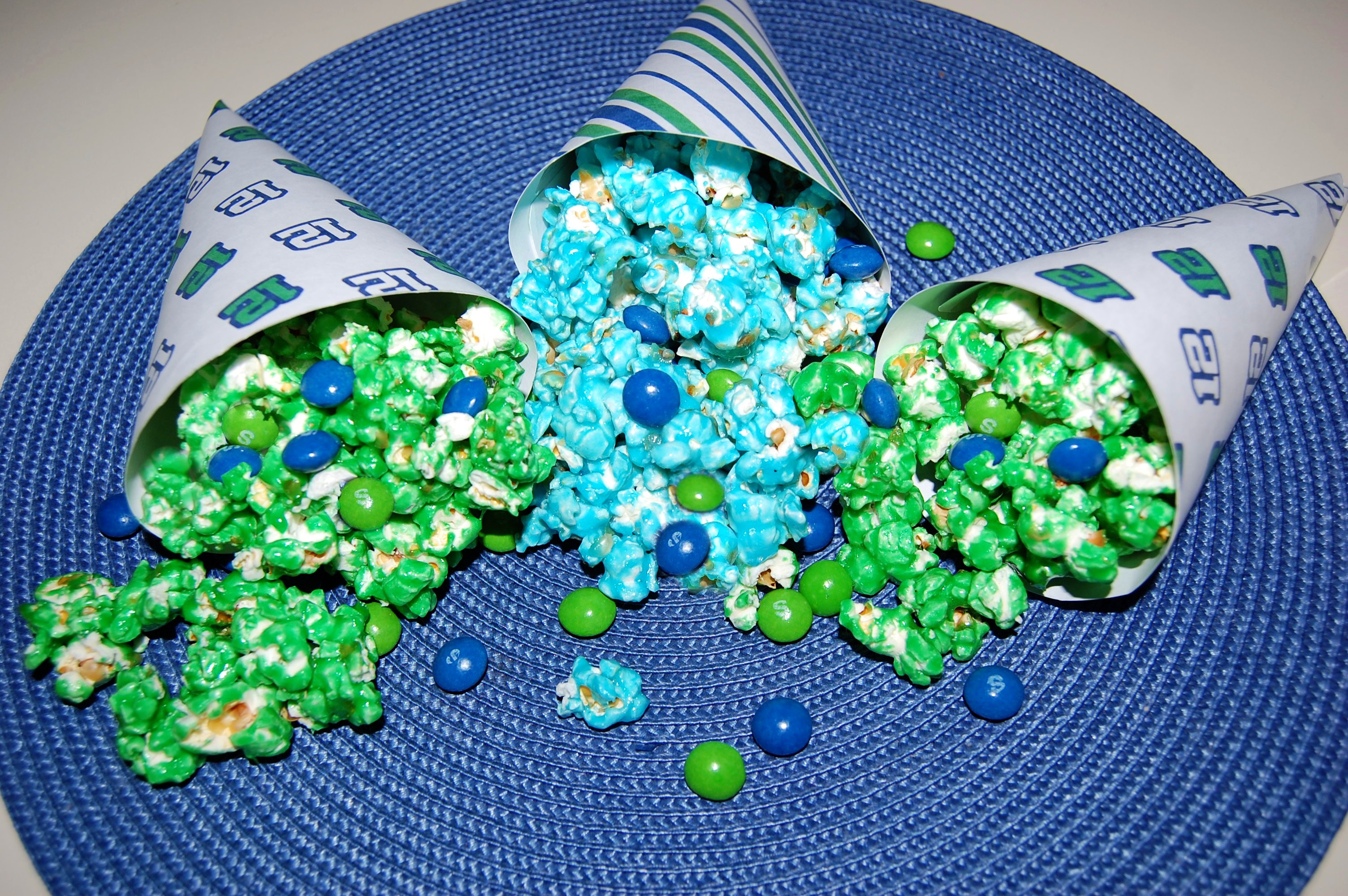 Fruit flavored popcorn in your favorite team's colors! Go Hawks!!