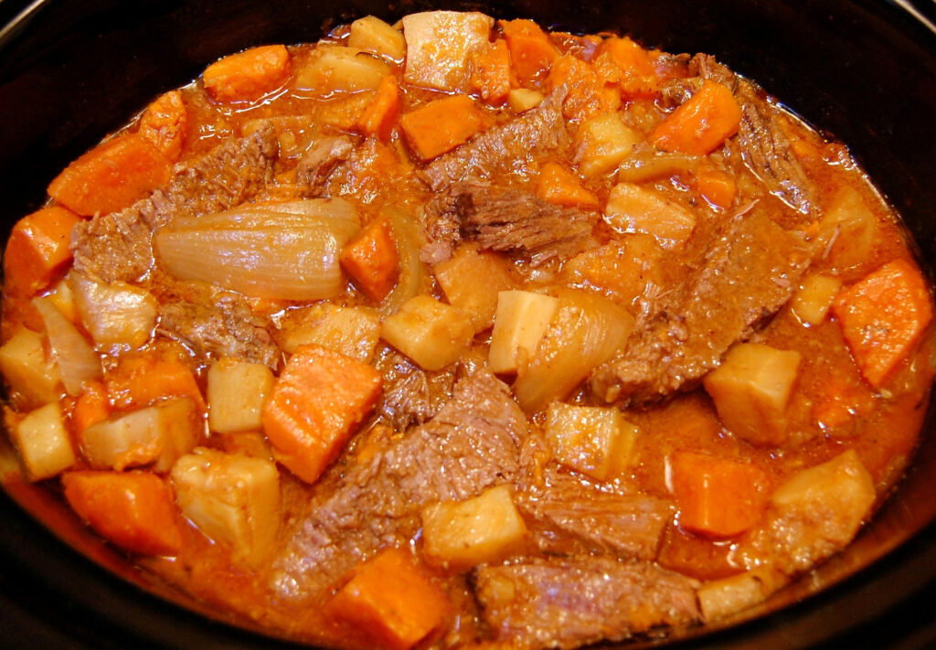 - Cover and cook on LOW for 7-8 hours OR on HIGH for 5-6 hours until the roast is tender.