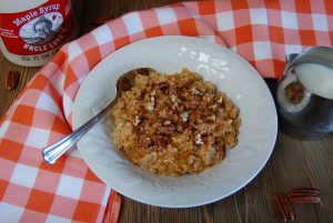 - Serve warm, drizzled with maple syrup and chopped pecans.