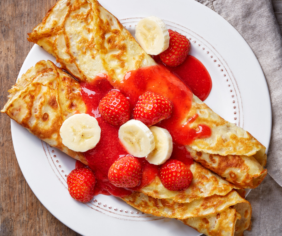 I like to serve these delicious crêpes with a side of bacon or sausage and fresh fruit.
