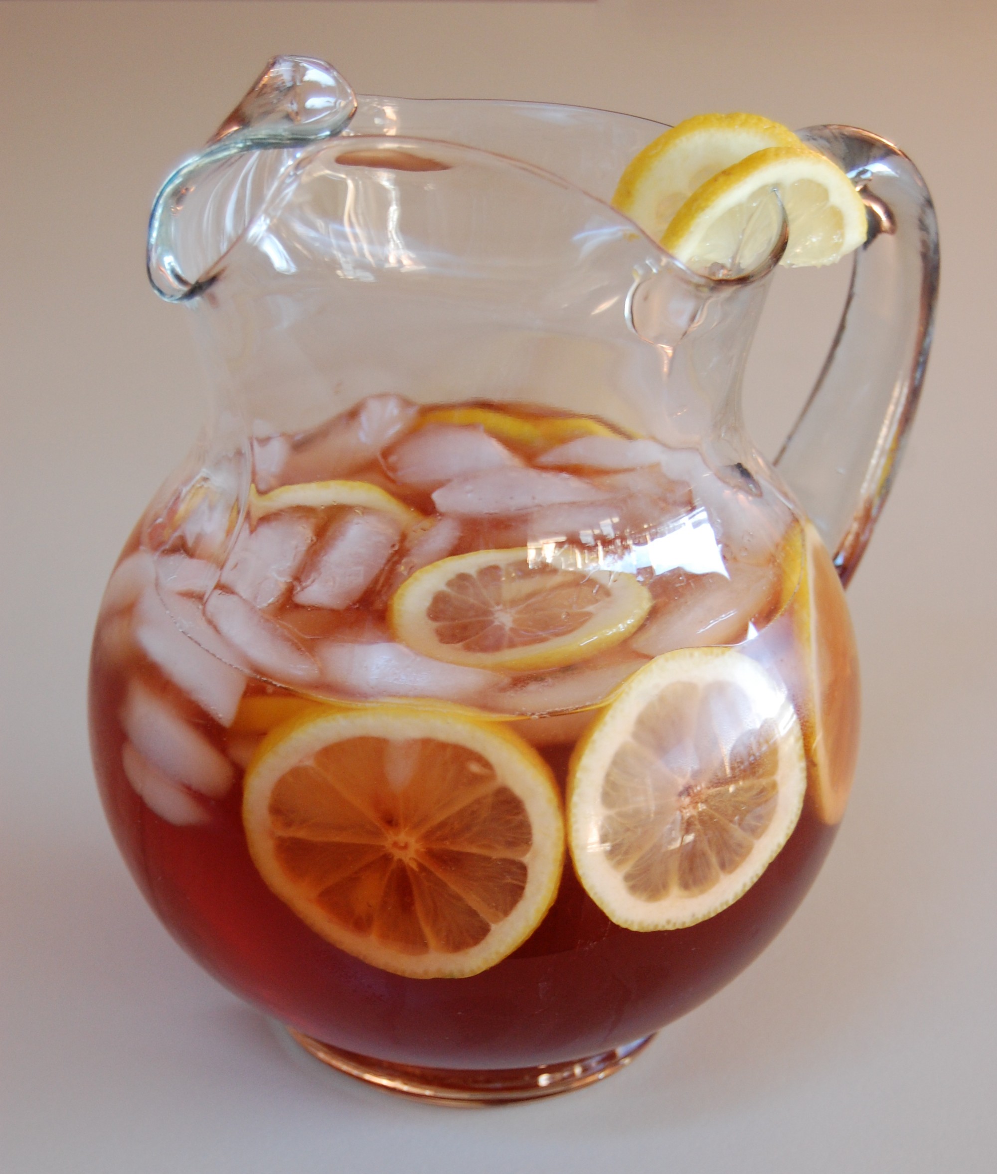 - Fill your glass pitcher with ice, pour the sugar on top of the ice and slowly and carefully pour the hot, steaming tea over the ice; stir well. Don’t pour hot tea directly into a glass pitcher without ice in it!!