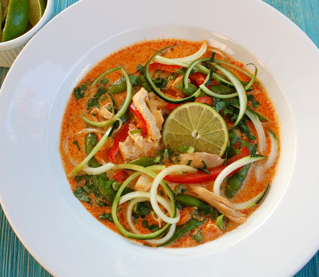 Our spicy coconut curry chicken zoodle soup is a tasty way to eat healthy!