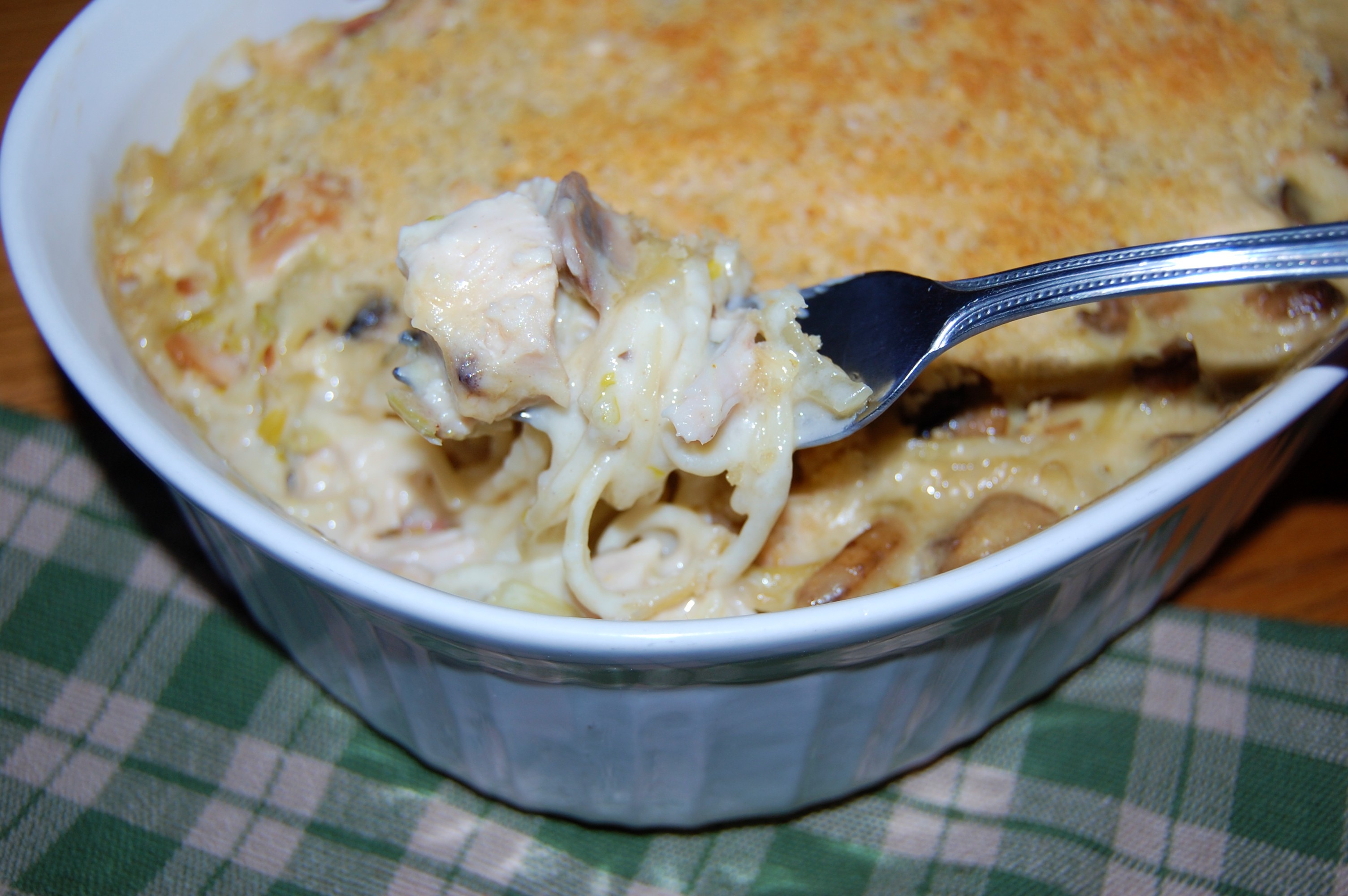 This delicious casserole combines leftover turkey, and cooked pasta, in a homemade creamy Parmesan cheese sauce!